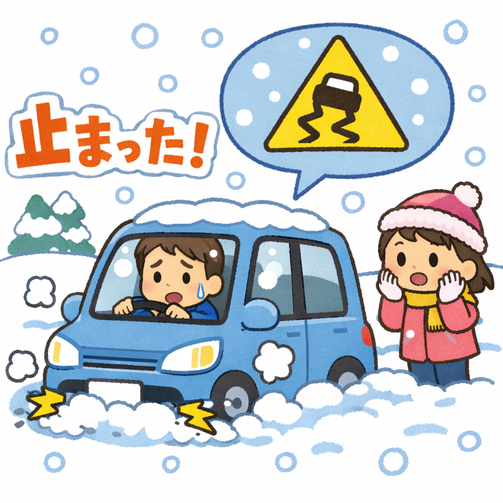雪がつもりすぎて車が止まってしまうんですよね。「スタックする」とか、「ハマる」とか言います。